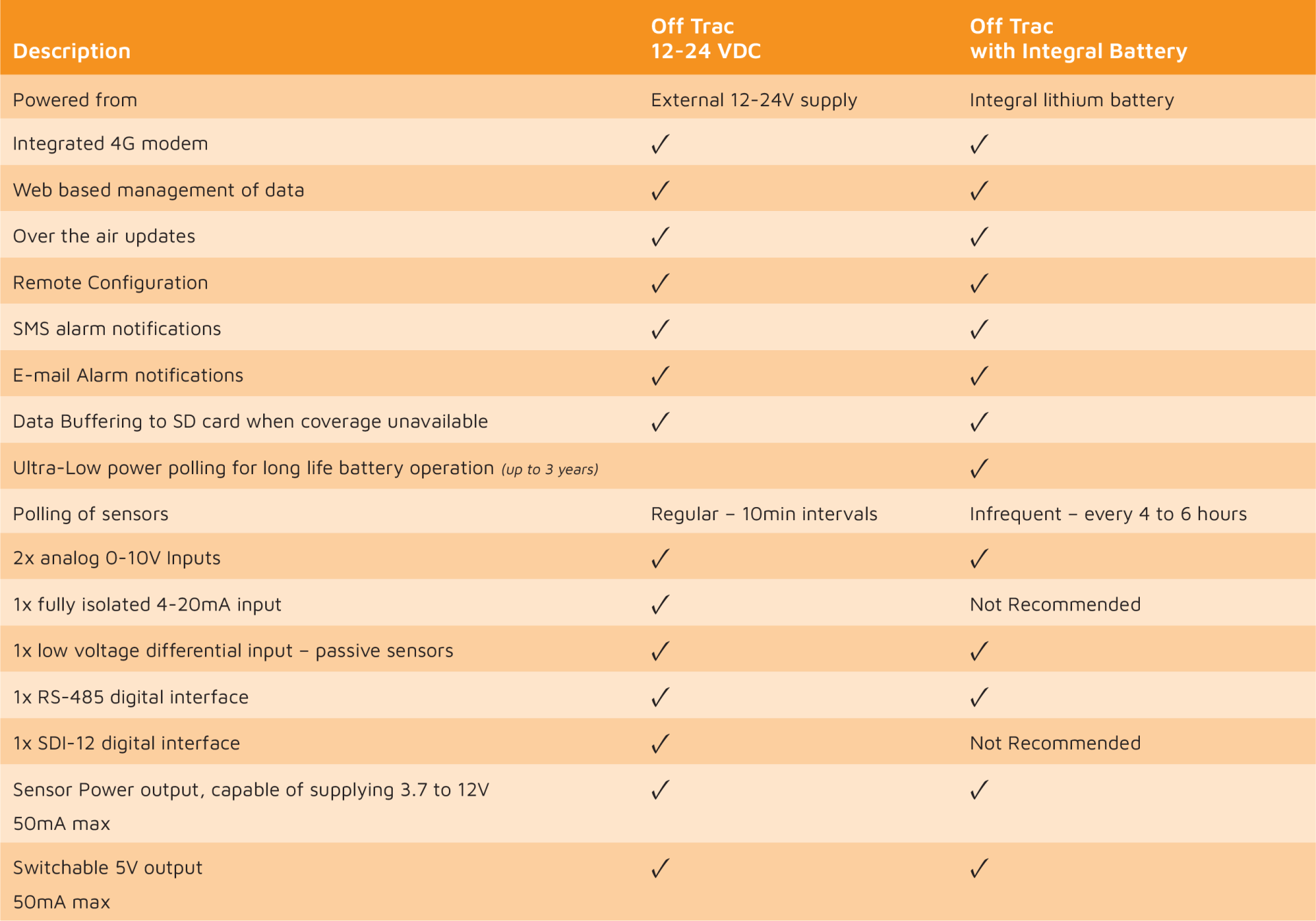 Our Off Trac monitoring system can be powered by low current 12-24 VDC systems, such as solar panels - ideal for off the grid locations.